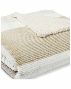 Best Pirce 👏 Eddie Bauer Fillmore Stripe Cement Textured Plush Sherpa Throw Home Blankets & Throws 🔔