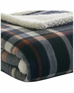 Flash Sale 🛒 Eddie Bauer Horizon Bay Navy Yarn Dye Sherpa Throw Home Blankets & Throws 👍