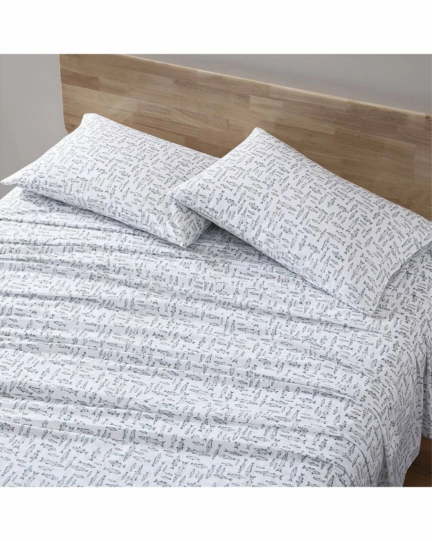 - Design details: woven to be lightweight and breathable; ideal for year round use, set includes a fully elastic fitted sheet- premium elastic installed all-around to keep the fitted sheet in place; deep pocket: 15″ fitted sheet pocket depth (12″ for twin sizes) – fitted sheet fits mattress up to 18″ (up to 15″ for twin sizes),,standard 100 by oeko-tex certified, a modern take on an eddie classic, oversized trout print in green on white ground