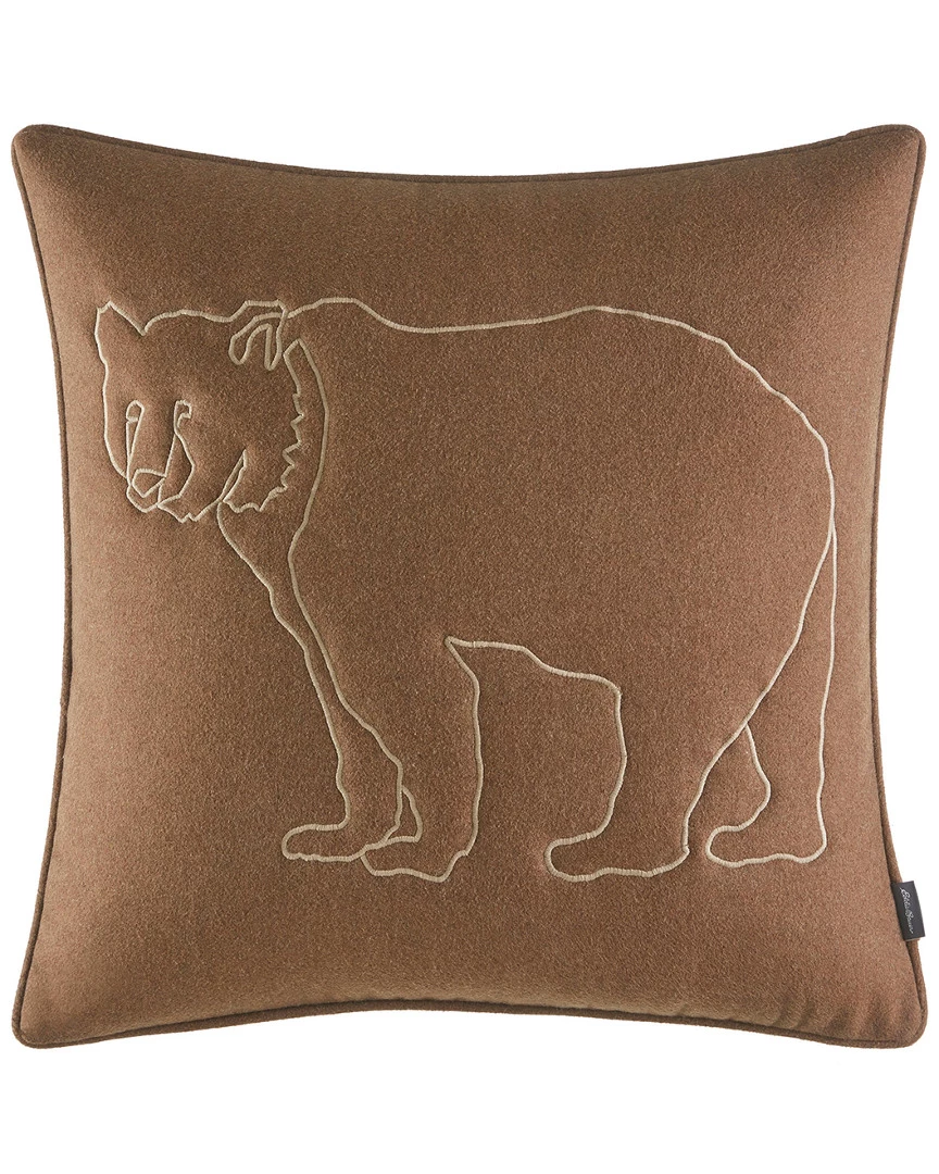 - Design details: Bring lodge style to your home with a new decorative throw pillow from Eddie Bauer. Perfect for an animal lover, the Bear Lines Brown Throw Pillow features a bear stitched into the brown felt ground and finished with delicate piped edges. Pillow is machine washable for easy care and features a zipper closure. Dimensions: 20″L x 20″W.