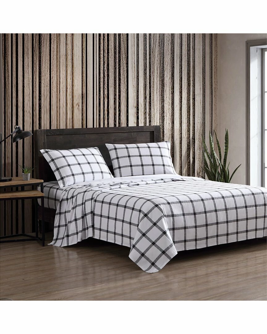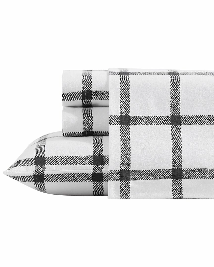 - Design details: brushed three times for extra softness and coziness; perfect for warm sleepers,set includes a fully elastic fitted sheet- premium elastic installed all-around to keep the fitted sheet in place; deep pocket: 15″ fitted sheet pocket depth (12″ for twin sizes) – fitted sheet fits mattress up to 18″ (up to 15″ for twin sizes); pillowcas,the coordinating pillow cases offer a side envelope closure, highlighting a more traditional, neat and tidy look for the bed,flannel sheets are also cotton, but have a raised surface that is fluffy, ultra-soft and cozy for a cold winters night; for colder climates they can be a lifesaver; brushed three times for extra softness and coziness, eddie’s modern oversized grid in deep charcoal on white ground