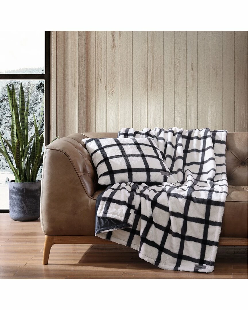 - Design details: luxuriously soft and cozy, reversible for alternate styling; features iconic eddie bauer logo patch, standard 100 by oeko-tex certified, minimalist charcoal plaid on off-white ground; reverses to charcoal micromink