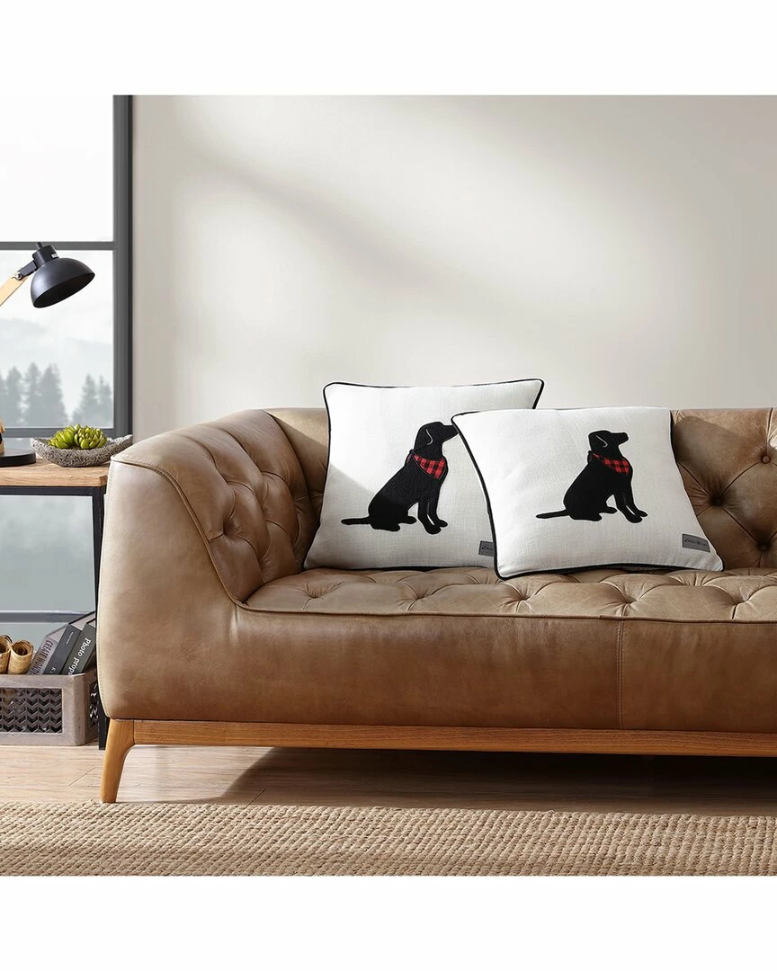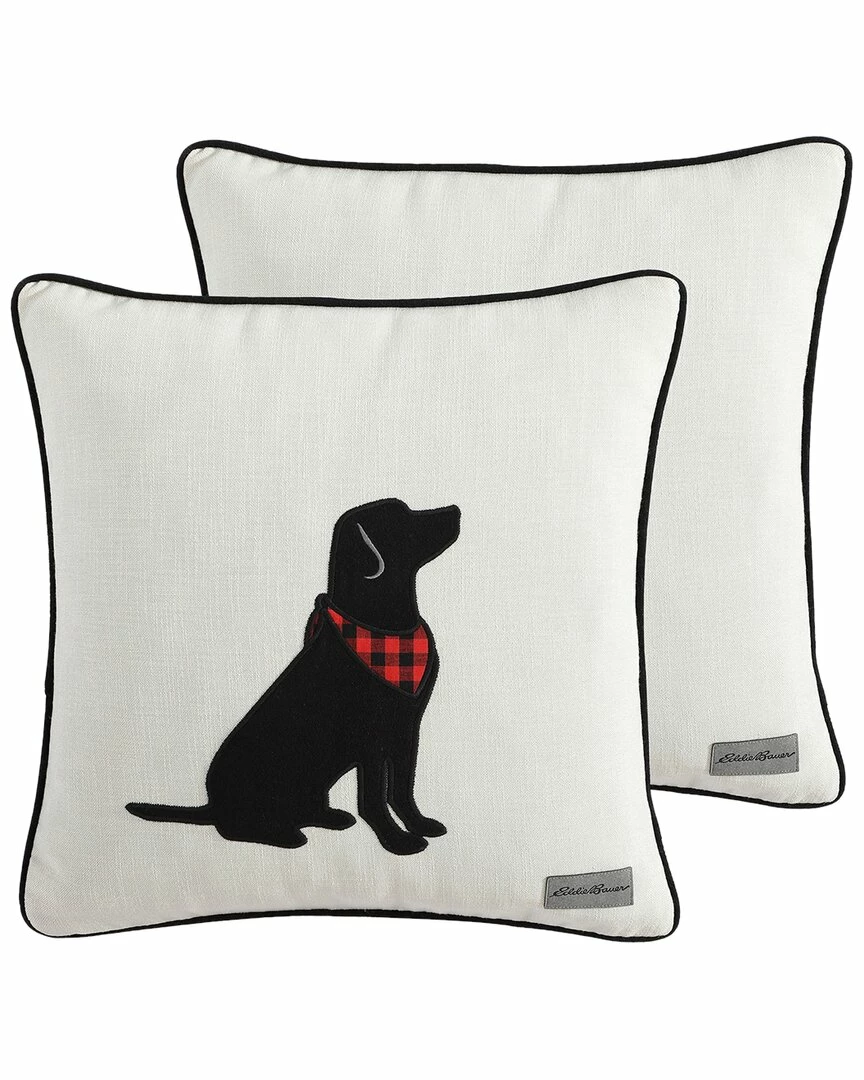 - Design details: featuring black cording all around for tailored look; hidden zipper closure, features signature eddie bauer logo patch, standard 100 by oeko-tex certified, off-white canvas with dog silhouette applique wearing a bandana featuring eddie bauer’s iconic buffalo check in red and black