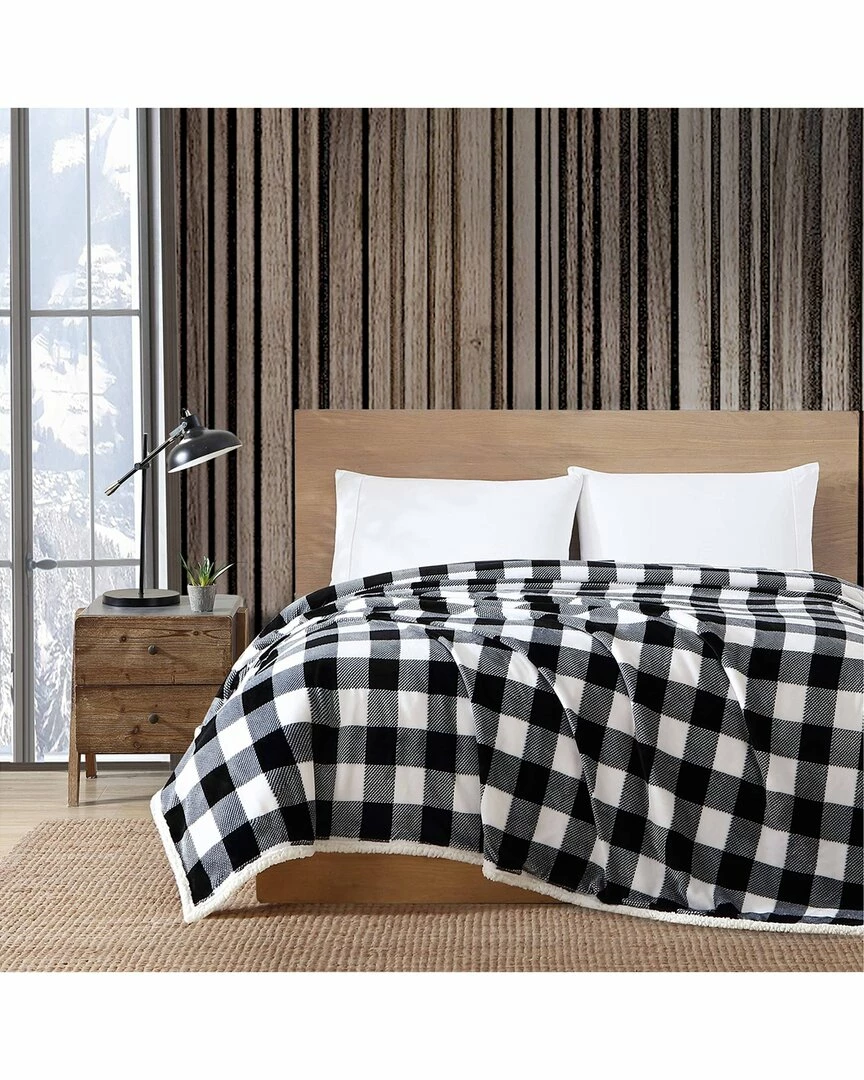 - Design details: ultra soft and cozy; medium-weight,reversible for alternate styling; top features ultra soft plush fleece, reversing to a cozy and warm sherpa reverse, eddie’s famous cabin plaid in white and charcoal; ivory sherpa reverse