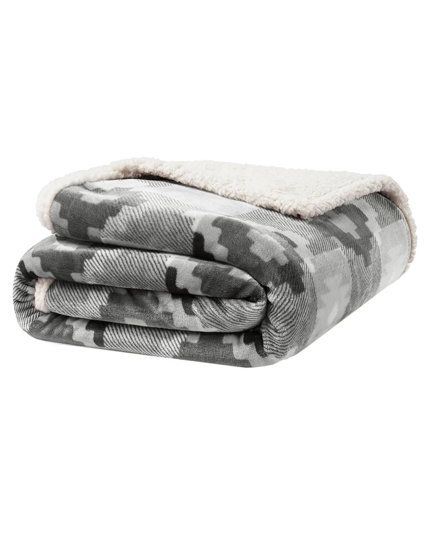- Design details: Stay warm and cozy with a new throw from Eddie Bauer. Available in three gorgeous colorways- grey, brown and red- the Cooper Creek Ultra Soft Plush Sherpa Throw features a stylish Aztec design that is perfect for any home. Throw is machine washable for easy care. Dimensions: 60″L x 50″W.