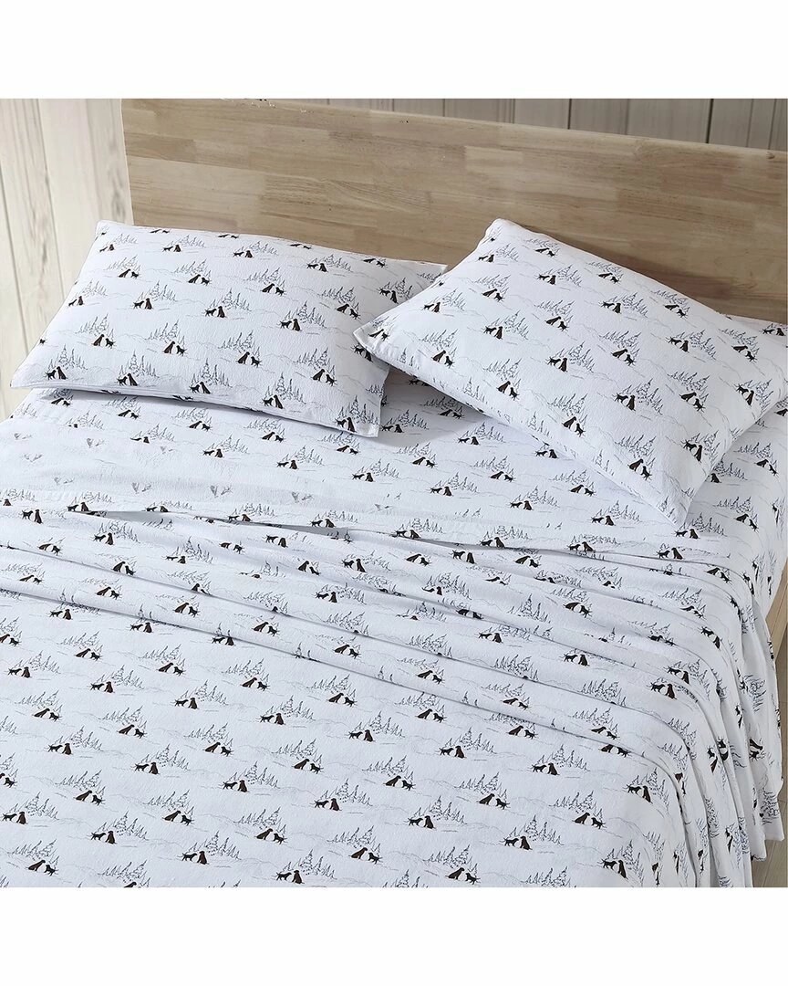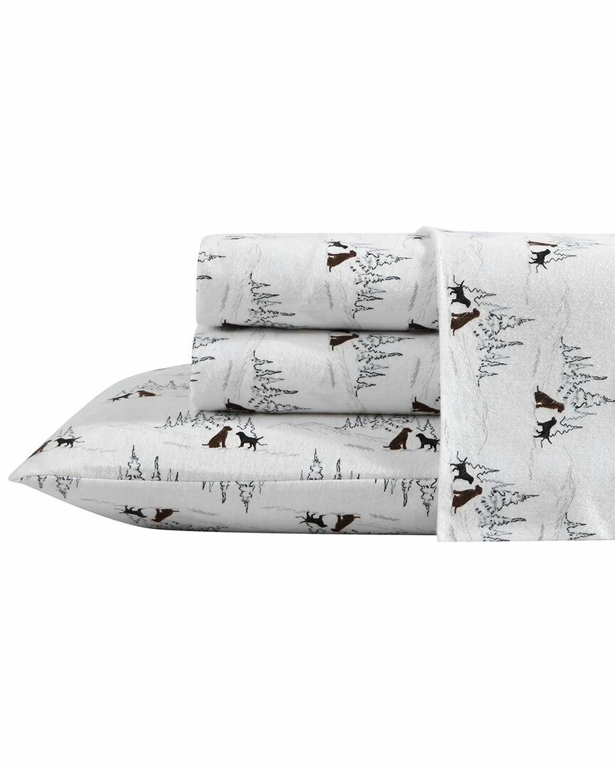 - Design details: brushed three times for extra softness and coziness; perfect for warm sleepers,set includes a fully elastic fitted sheet- premium elastic installed all-around to keep the fitted sheet in place; deep pocket: 15″ fitted sheet pocket depth (12″ for twin sizes) – fitted sheet fits mattress up to 18″ (up to 15″ for twin sizes); pillowcas,the coordinating pillow cases offer a side envelope closure, highlighting a more traditional, neat and tidy look for the bed,flannel sheets are also cotton, but have a raised surface that is fluffy, ultra-soft and cozy for a cold winters night; for colder climates they can be a lifesaver; brushed three times for extra softness and coziness, eddie’s playful multi-colored novelty featuring black labs and snowy mountains