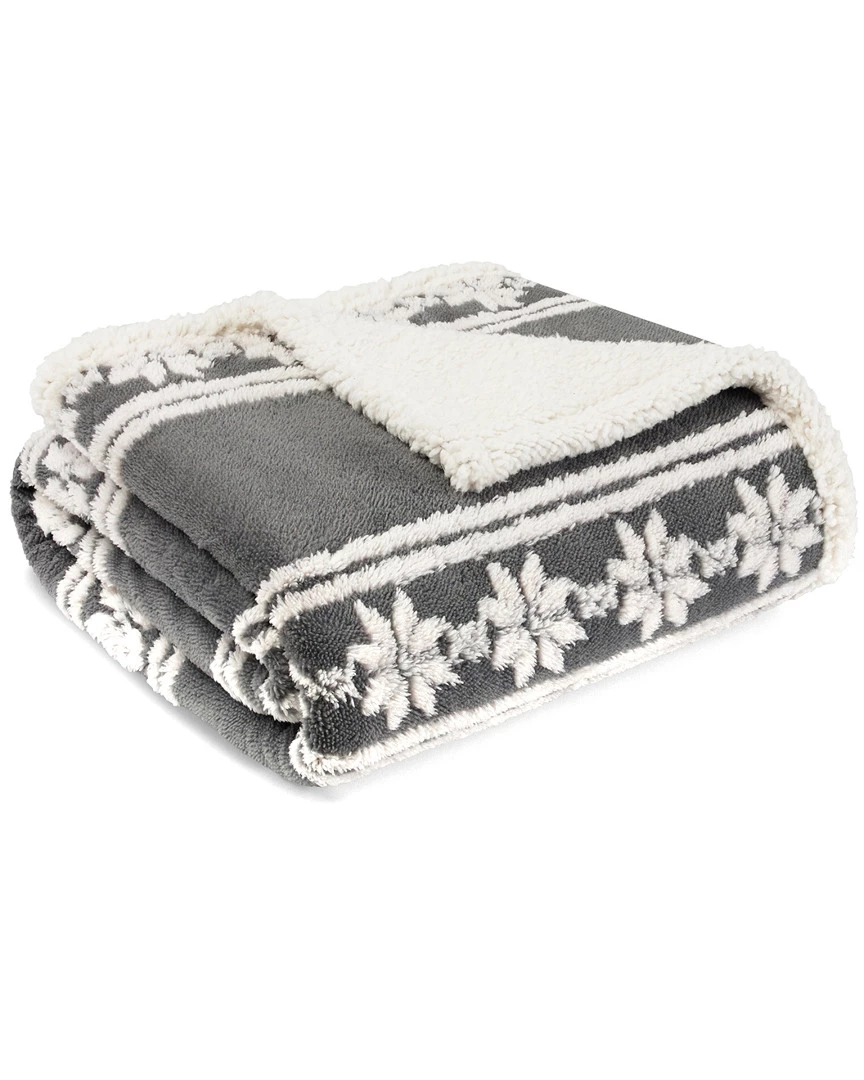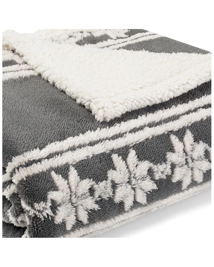 - Design details: Stay warm and cozy with a new throw from Eddie Bauer. The Snowflake Fair Isle Grey Raised Ultra Soft Plush Sherpa Throw features white snowflakes on a grey ground with a natural sherpa reverse. Throw is machine washable for easy care. Dimensions: 60″L x 50″W.